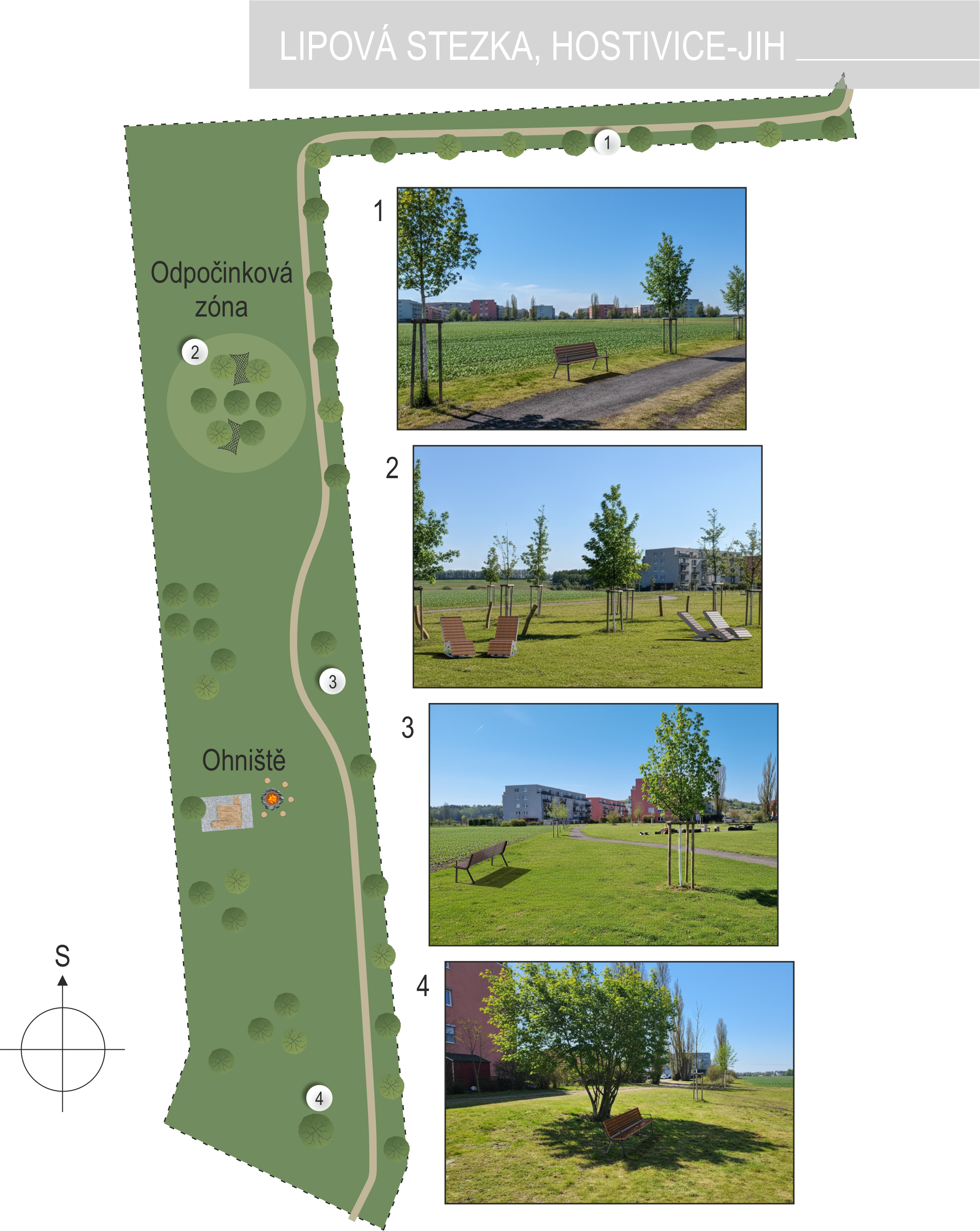 Lipová stezka je přirozeným centrem pohybu i setkávání obyvatel Hostivice – Jih. Využívají ji rodiny s dětmi, senioři, pejskaři i lidé, kteří si jdou jen vyčistit hlavu po práci. Instalace několika laviček a lehátek podél stezky umožní seniorům bezpečně si odpočinout během procházky, rodičům posedět, zatímco si děti hrají a sousedům zastavit se a popovídat si.